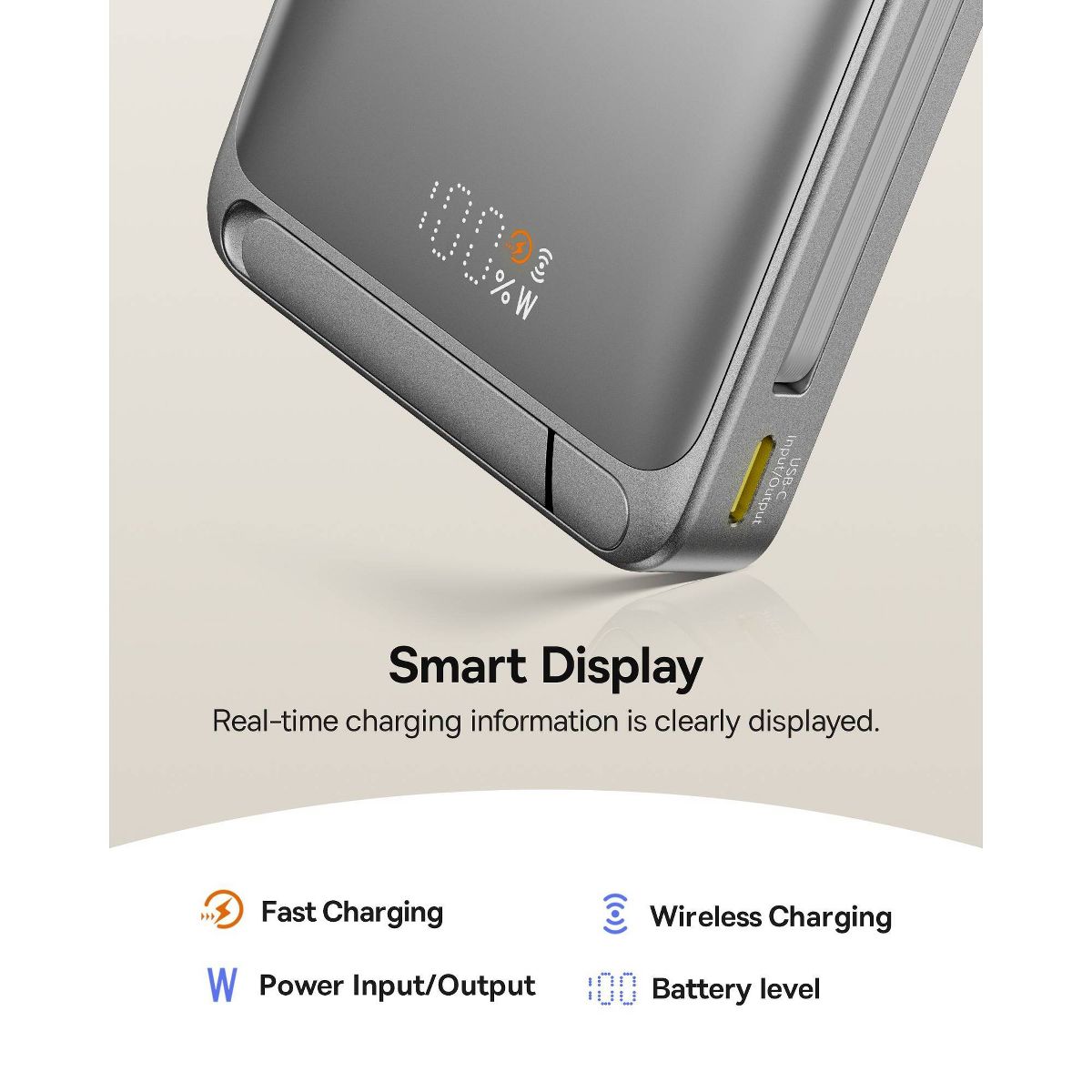 Get powerful, efficient charging with our 15W Nomos for MagSafe Portable Charger. Featuring Qi2 certification, you can trust a fast, secure, and efficient charge every time. With 15W ultra-fast wireless technology, your iPhone 15 can be boosted from 0% to 57% in just 30 minutes. The built-in two-way fast charging USB-C cable supports 45W output and 30W input, so you never have to worry about forgotten cables. With a 10,000mAh capacity, you can recharge your iPhone 15 Pro up to 1.8 times, making it an ideal power source for smartphones, earphones, video game consoles, and more. The foldable built-in stand allows for convenient desktop placement and charging while you watch your favourite shows. The smart display keeps you up to date with real-time updates on charging progress and estimated completion time Whether you need a portable charger MagSafe for your travels or a reliable portable charger for iPhone everyday use, this device exceeds expectations.