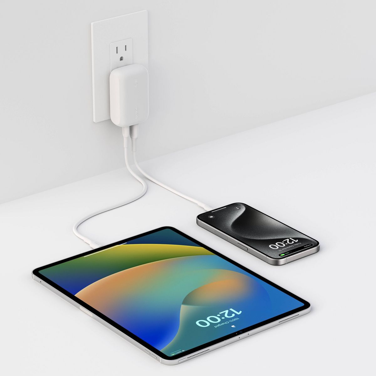 Fast charge an iPhone or Samsung smartphone while simultaneously charging a second device with our BOOST↑CHARGE Dual Wall Charger 42W. Dual ports include a 30W USB-C port and a 12W USB-A port. It’s USB-C PD 3.1 certified to deliver fast charging of 0-50% in as little as 30 minutes for Apple iPhone or Samsung Galaxy. Get a fast, safe charge to your smartphone, and purchase with peace of mind as this charger comes with a 2-year warranty and $2,500 Connected Equipment Warranty (CEW). Comes with a 1M / 3.3-foot USB-C to USB-C cable.