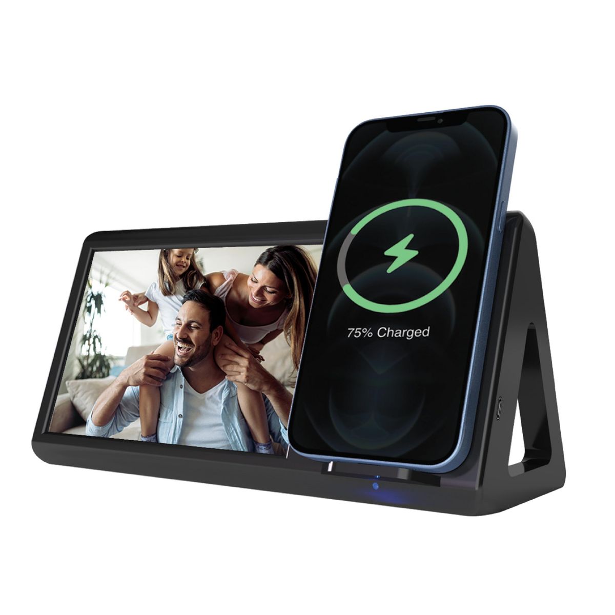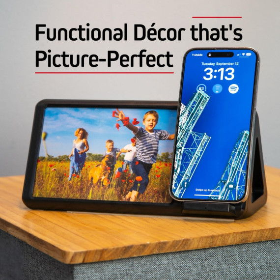 - 2-in-1 Functionality: This handy accessory doubles down as a photo frame and as a wireless charger for your phone. Admire cherished moments while powering your smartphone device with the Wireless-Charging Photo Frame.