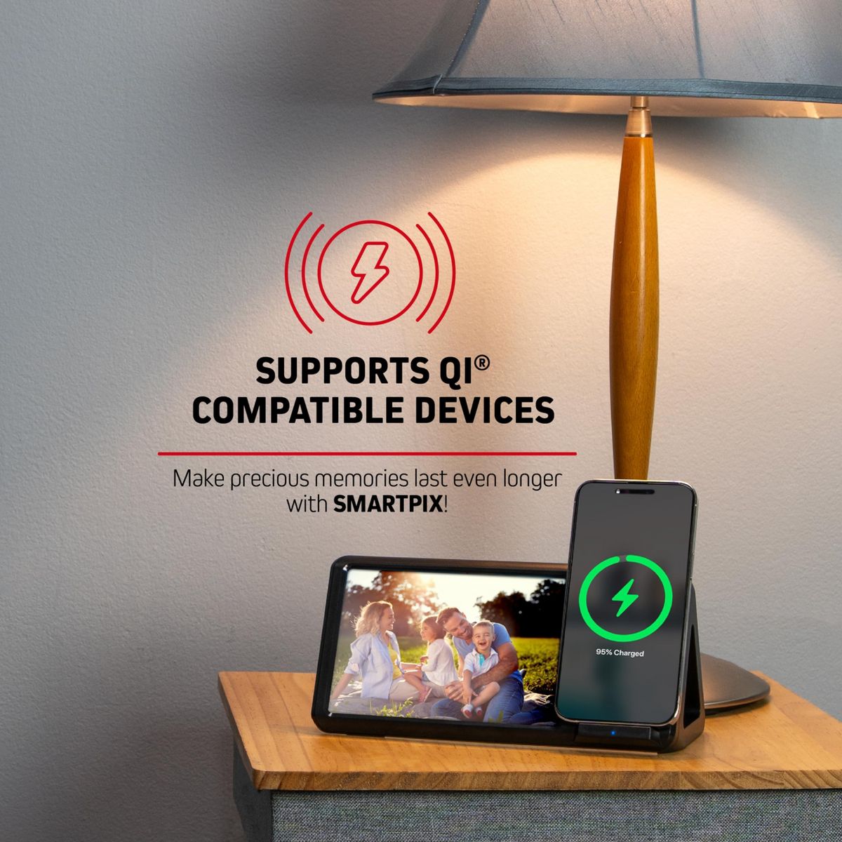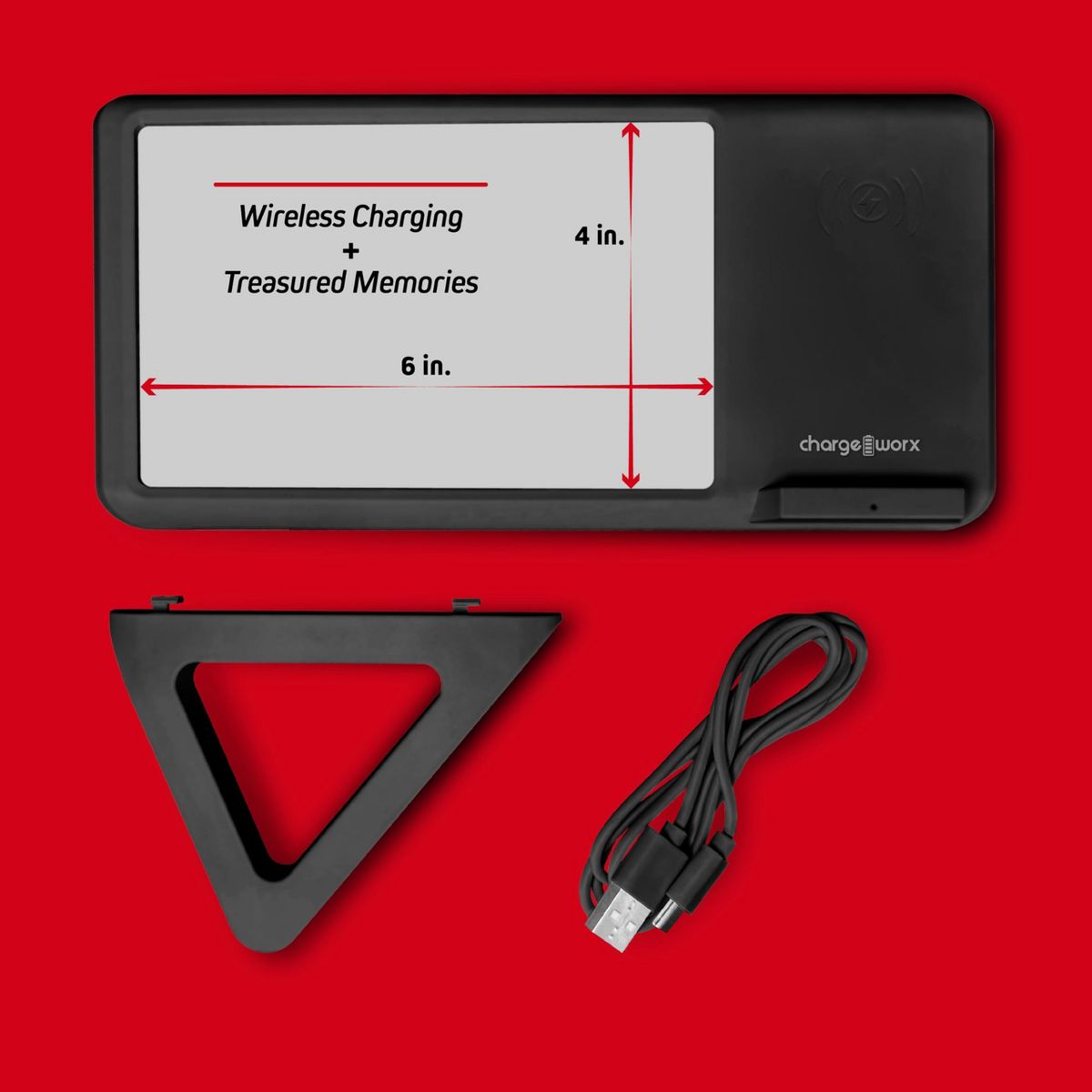- Supports Photos 4' x 6': Make timeless memories last even longer with Chargeworx's Wireless Charging Stand. The photo frame's canvas supports any photo that is up to 4' by 6' big, making it an incredible accessory for nightstands, office desks, and even your living room table!
