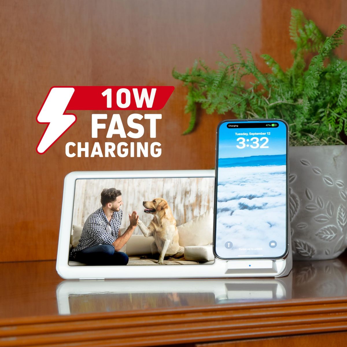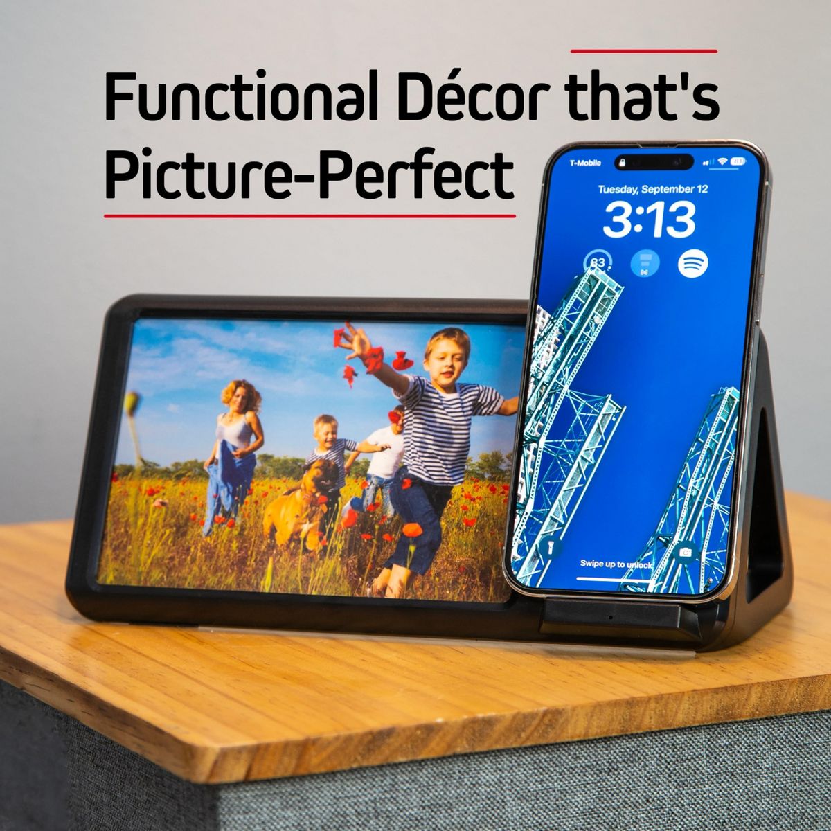 - 2-in-1 Functionality: This handy accessory doubles down as a photo frame and as a wireless charger for your phone. Admire cherished moments while powering your smartphone device with the Wireless-Charging Photo Frame.