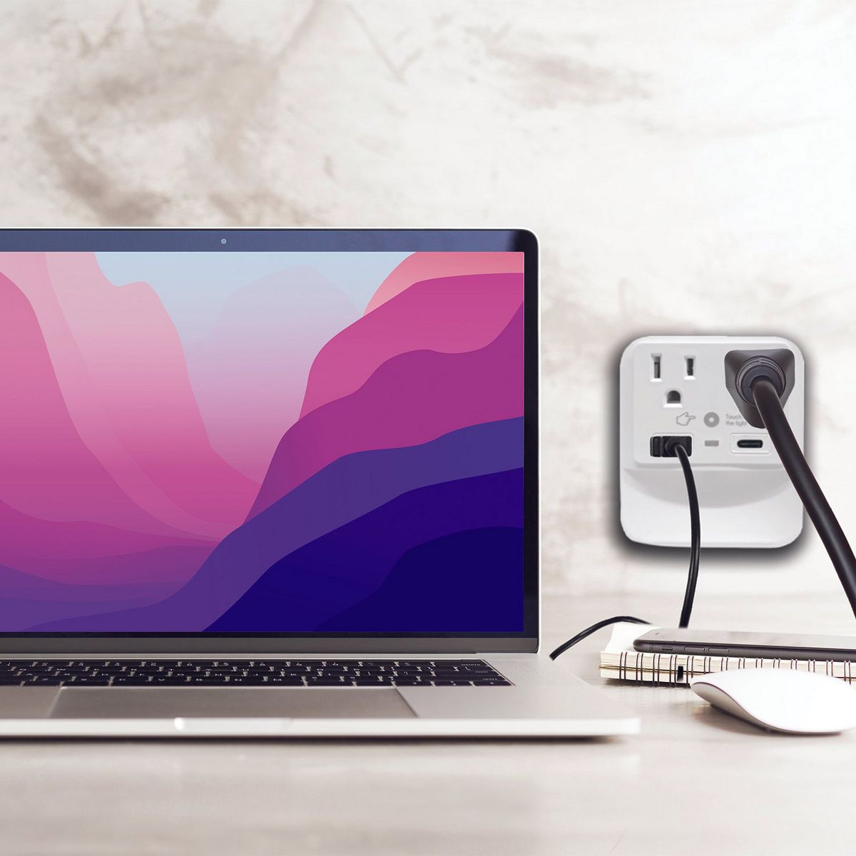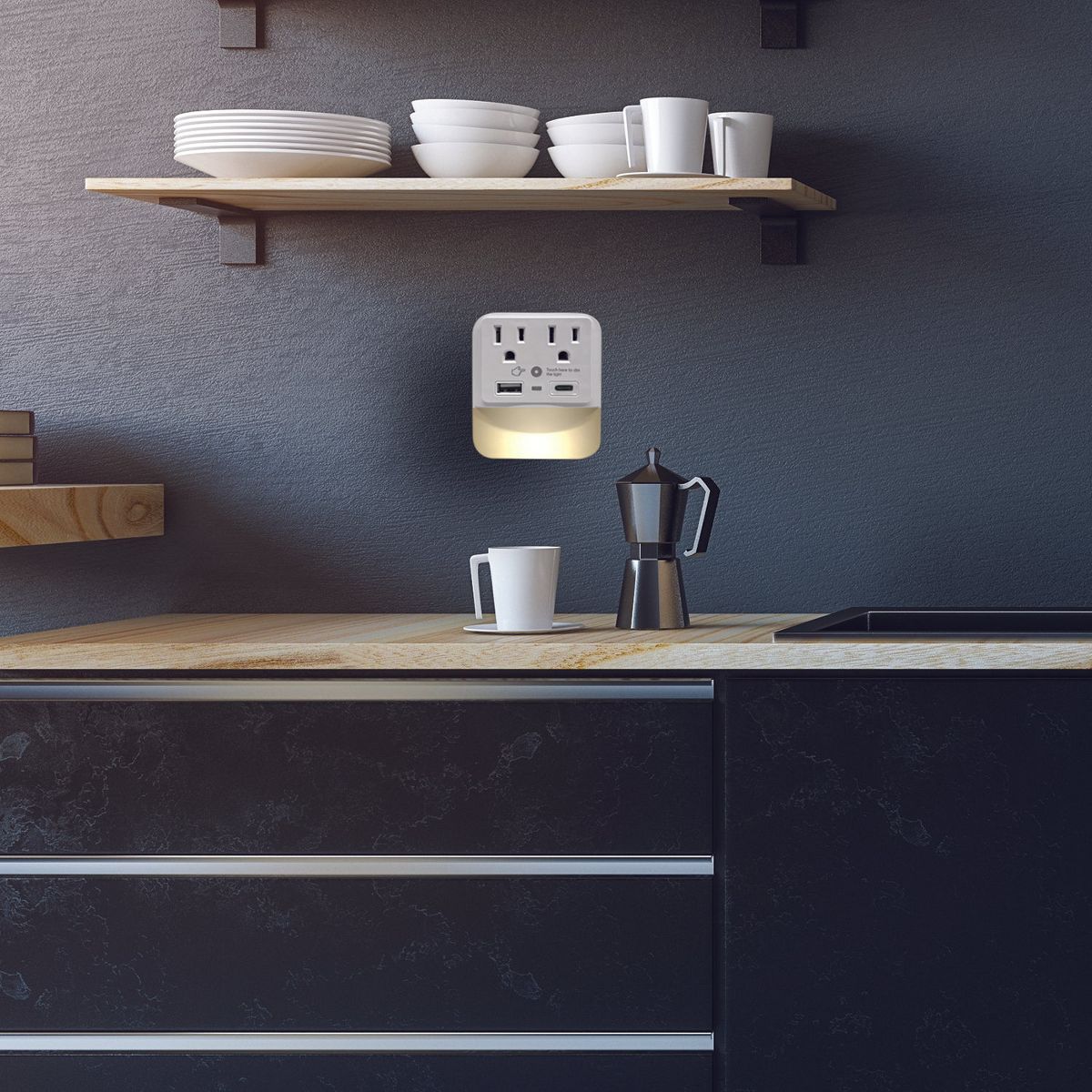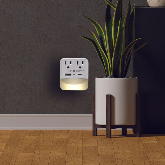 Ciao Tech 2 Outlet, 1 USB, 1 Type-C Wall Tap Adapter with LED Night Light, White