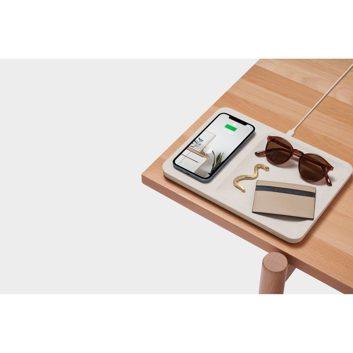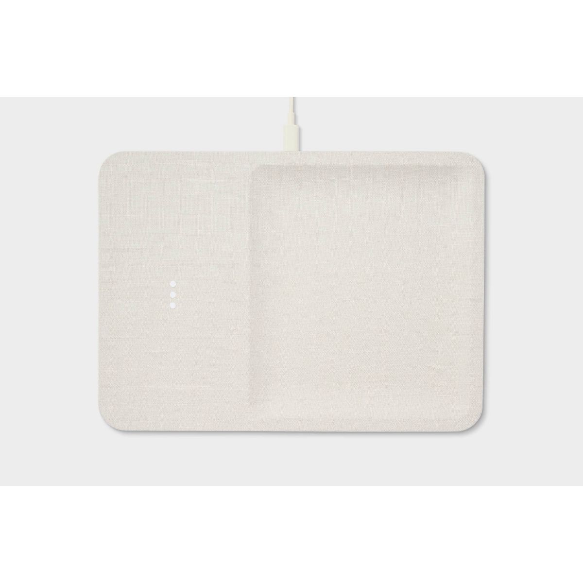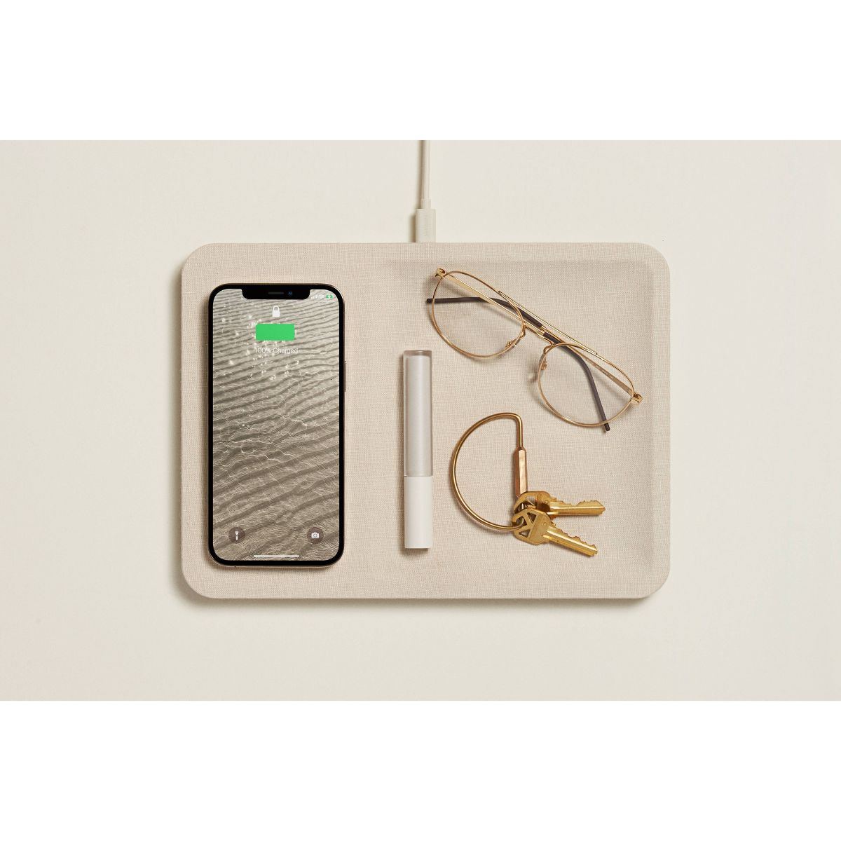 A stylish new home for your everyday items. The CATCH:3 combines our multi-coil, single-device wireless charging technology with a familiar valet silhouette wrapped in designer-quality Belgian Linen. We recommend placing the CATCH:3 on bedside or entryway tables so you can thoughtfully organize your accessories and charge your devices—all in one place. The included cable is color-matched to the linen and the CATCH:3 comes with a power adapter. Spacious accessories compartment; Weighted, non-slip construction; 3-Coil Qi-Certified fast wireless charging (up to 10W output); Additonal USB-A output; Charges through most cases up to 3mm thickness.