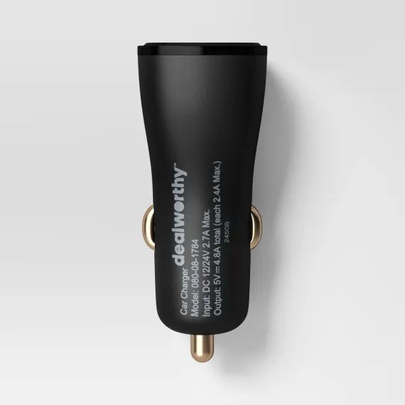 Dual Port USB-A Car Charger 2pk - dealworthy™ Black