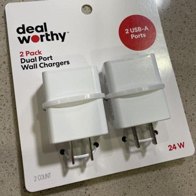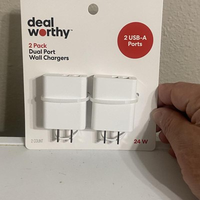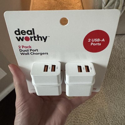 Dual Port USB-A Home Charger 2pk - dealworthy™ White: Smart Charging Wall Adapter
