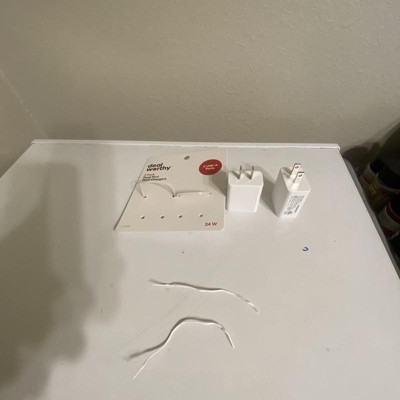 Power up your devices efficiently with the Dual Port USB-A Home Charger 2pk from dealworthy™ in White. Featuring efficient charge technology, each charger delivers 24 watts of power through USB-A dual ports in each charger, ensuring fast and reliable charging. The lightweight design makes them perfect for home, office or travel, and with two chargers included, you’ll always have a backup when you need it.