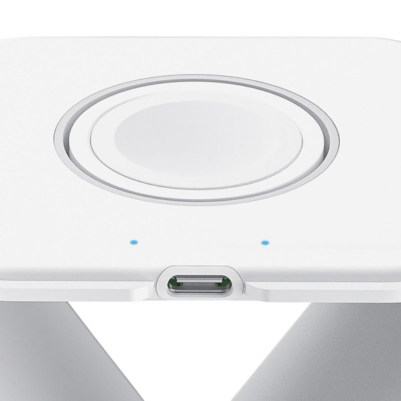 Recharge up to 3 of your digital devices and accessories with ease using this 3-in-1 Foldable Wireless Charger from FISHER® Tech Essentials. This charger works with Apple® devices and Android™ phones that are wireless charging compatible. The portable folding design provides for easy carrying and storage, ideal for travel or daily use. 15-watt fast charging gets your devices charged quickly and efficiently.