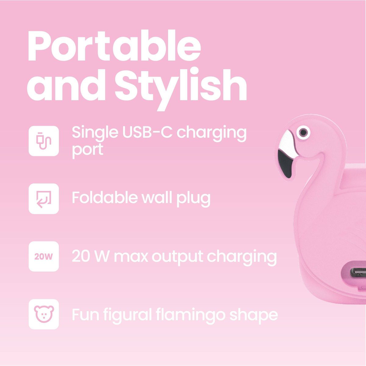Add some fun to your charging setup with the Gems Flamingo Wall Charger! This adorable charger features a single USB-C charging port and delivers a 20W max output, ensuring your devices charge quickly and efficiently. The folding wall plug design allows for easy storage and portability, making it perfect for travel. With its fun flower shape, this charger combines playful style with practicality, brightening up your space while keeping your devices powered up in no time.