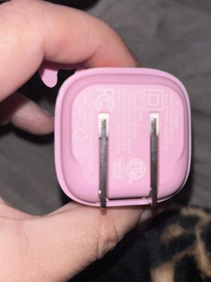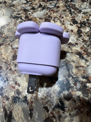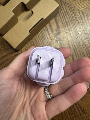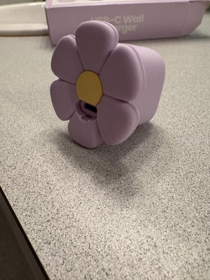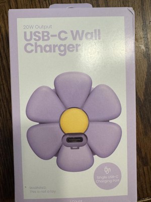 This USB-C wall charger is just darling! I love the light purple flower - it is a soft, silicone feeling material. The plug in the back folds in which is great for storage or traveling. So far I have not had any issues!