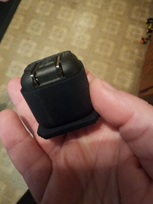 The nerd in me loves the retro gaming design of this charger, and fits my esthetic well. It charges using my regular cords, and fits my gaming room well. I also really enjoy the factor that the plug portion for the outlet folds in on itself, also making it ideal to pack for traveling. The section in the middle also lights up, making it easy to plug in when its dark, and to know when its working hard at charging my devices.