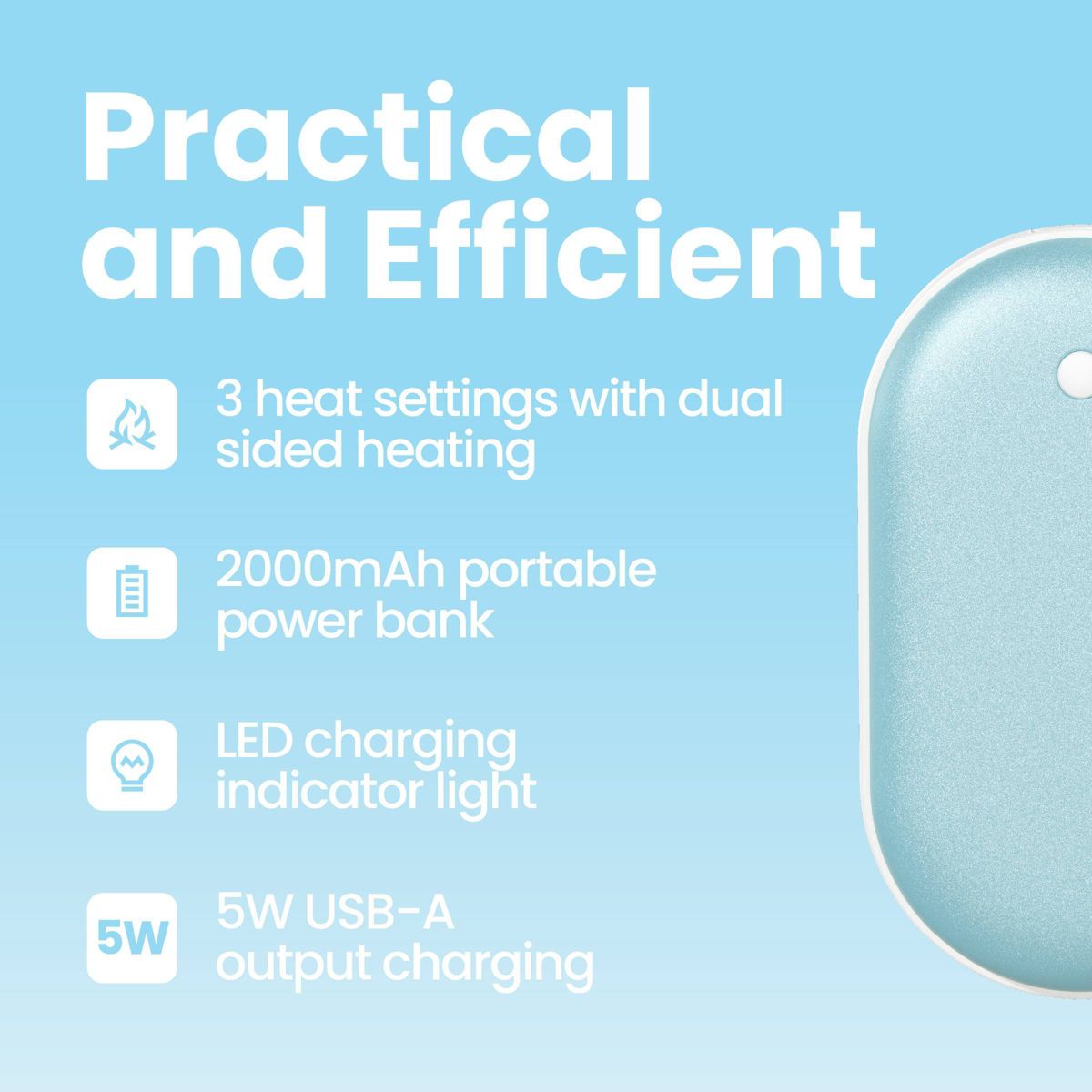 GEMS Hand Warmer 2000mAh Power Bank - Sky Blue