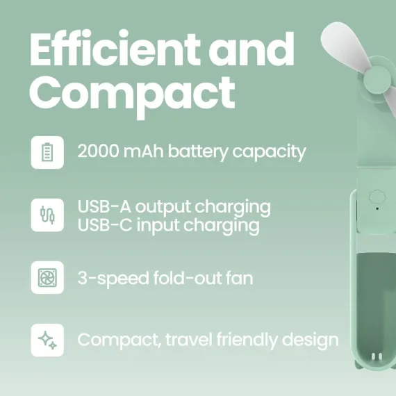 Stay cool and charged wherever you go with the GEMS Handheld Power Bank Fan. This smart 2-in-1 device combines a powerful portable fan with a built-in 2,000mAh power bank to keep you refreshed and your devices powered on the go. The fold-out fan features three adjustable speed settings, while the compact design makes it easy to carry in your purse, backpack, or travel bag. It includes a USB-C charging cable for quick recharging and doubles as a backup power source for your phone or small electronics. Perfect for commutes, vacations, or outdoor activities, this GEMS Handheld Power Bank Fan keeps you comfortable and connected anytime, anywhere.