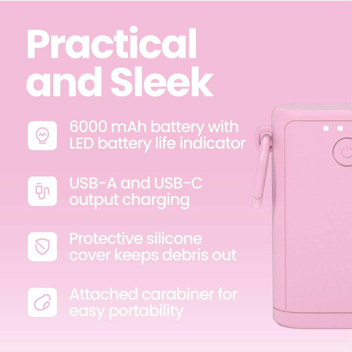 Stay powered up through every adventure with the GEMS Portable Outdoor 6000mAh Power Bank. Designed to handle outdoor conditions, this compact power bank is both dustproof and water-resistant, making it perfect for the beach, poolside, or camping trips. The 6,000mAh battery provides reliable charging for your devices, while dual USB-A and USB-C outputs let you charge more than one device at a time. It also features a protective silicone port cover to keep out sand and debris, plus an LED indicator to monitor battery levels. With a built-in carabiner for easy attachment to bags or gear, this durable, travel-friendly power bank is your ideal source of power wherever your day takes you.