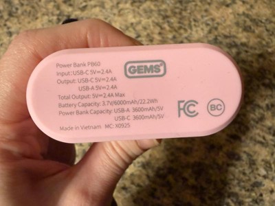 GEMS Portable Outdoor 6000mAh Power Bank - Soft Pink