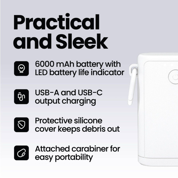 Stay powered up through every adventure with the GEMS Portable Outdoor 6000mAh Power Bank. Designed to handle outdoor conditions, this compact power bank is both dustproof and water-resistant, making it perfect for the beach, poolside, or camping trips. The 6,000mAh battery provides reliable charging for your devices, while dual USB-A and USB-C outputs let you charge more than one device at a time. It also features a protective silicone port cover to keep out sand and debris, plus an LED indicator to monitor battery levels. With a built-in carabiner for easy attachment to bags or gear, this durable, travel-friendly power bank is your ideal source of power wherever your day takes you.