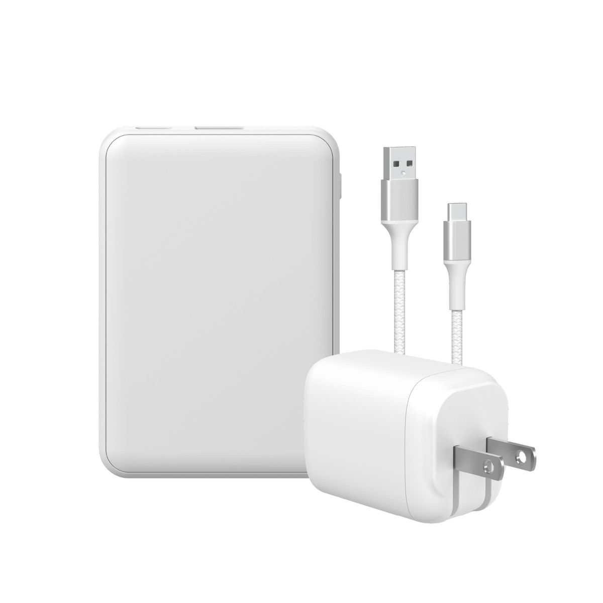 GEMS USB-A to USB-C Charging Gift Set with 5000MmAh Power Bank, Cable, and Wall Charger - White