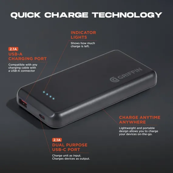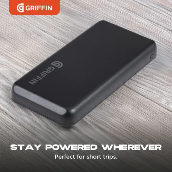Lightweight, durable, and sleek, the GRIFFIN portable power bank is easy to