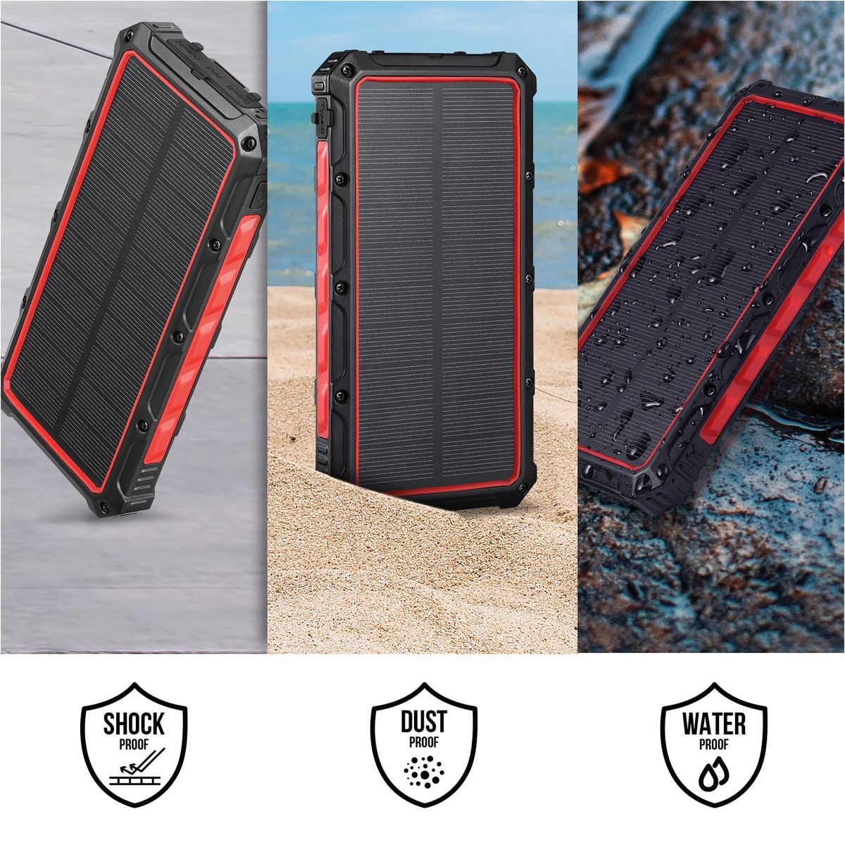Built to withstand the elements, this power bank is waterproof, shockproof, and dustproof, making it the perfect companion for the outdoors. With a 16000mAh capacity, this solar-powered device has dual USB and wireless outputs, allowing you to charge up to three devices simultaneously.