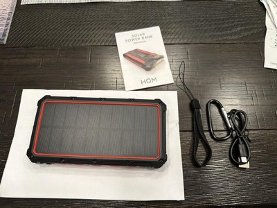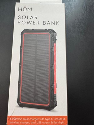 HOM Solar Power Bank for Apple iPhone and Android - Dual USB and Wireless Outputs - Charge Up to 3 Devices Simultaneously (16000mAh)