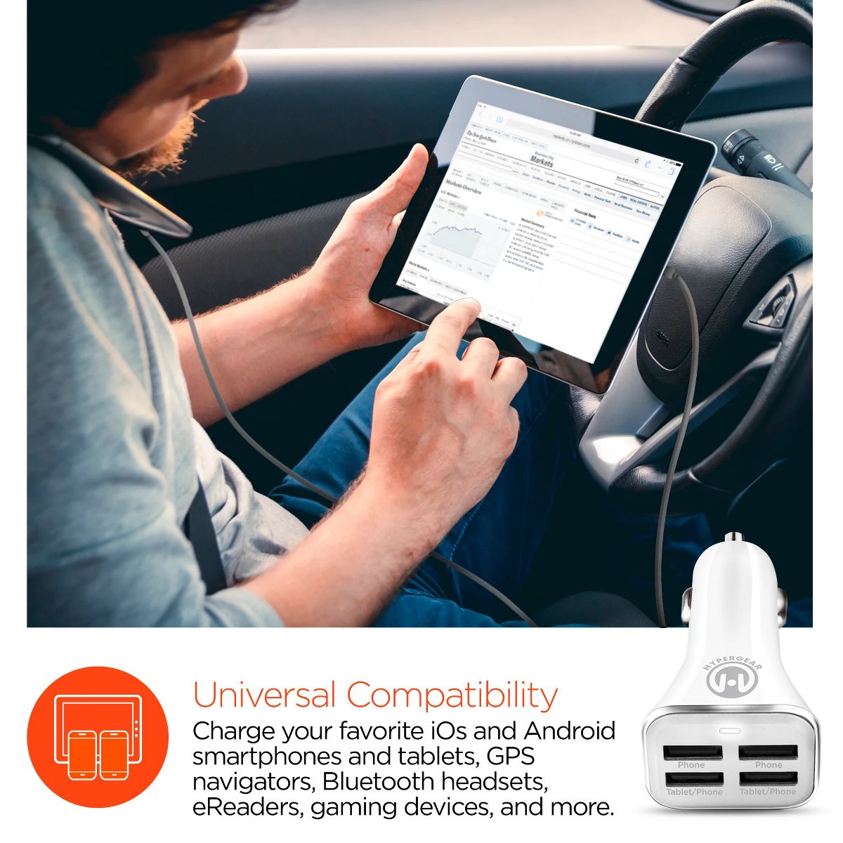 HyperGear High-Power 34W Quad USB Car Charger | White