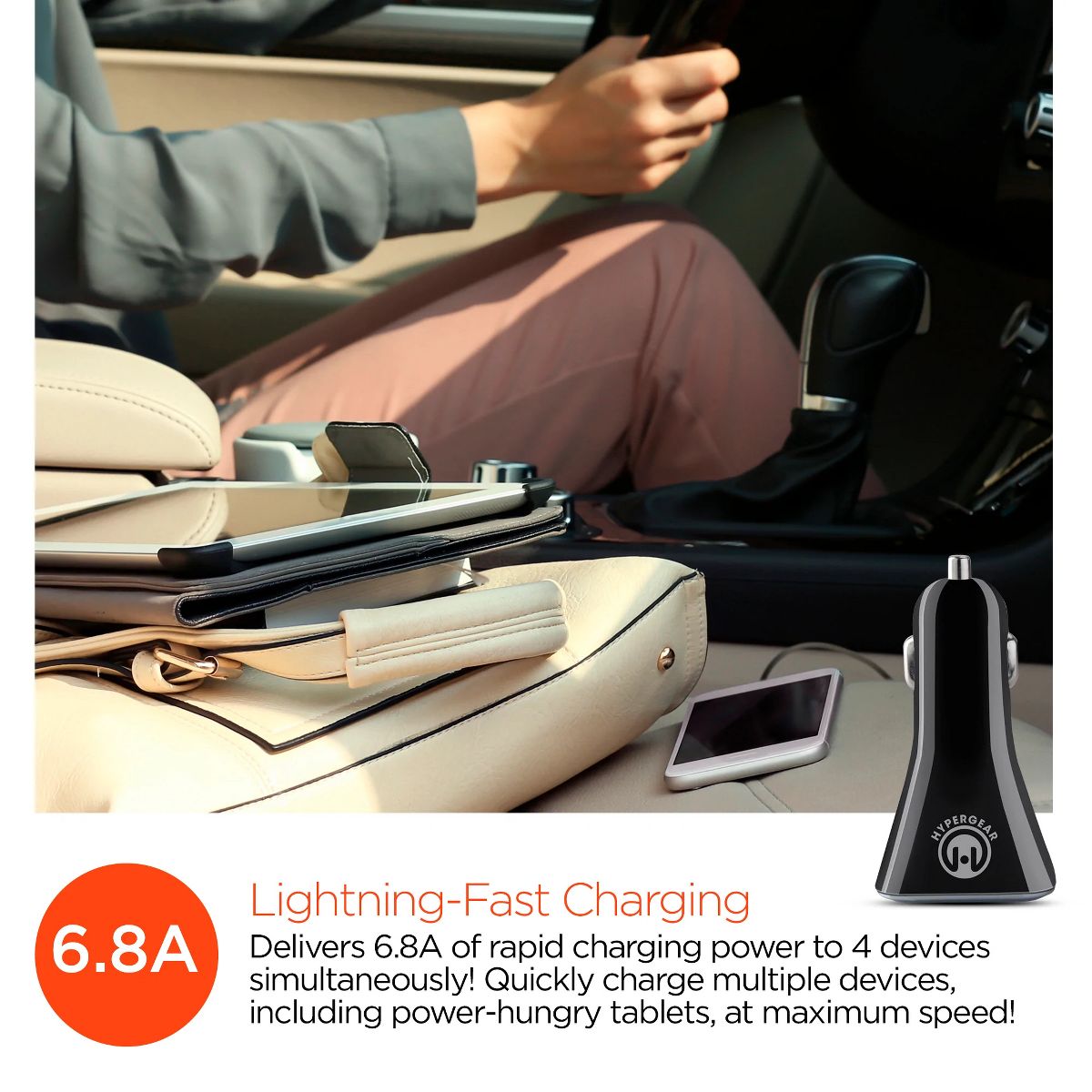 HyperGear High-Power 34W Quad USB Car Charger | White