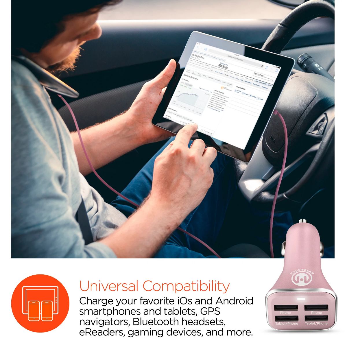 HyperGear High-Power 34W Quad USB Car Charger | White