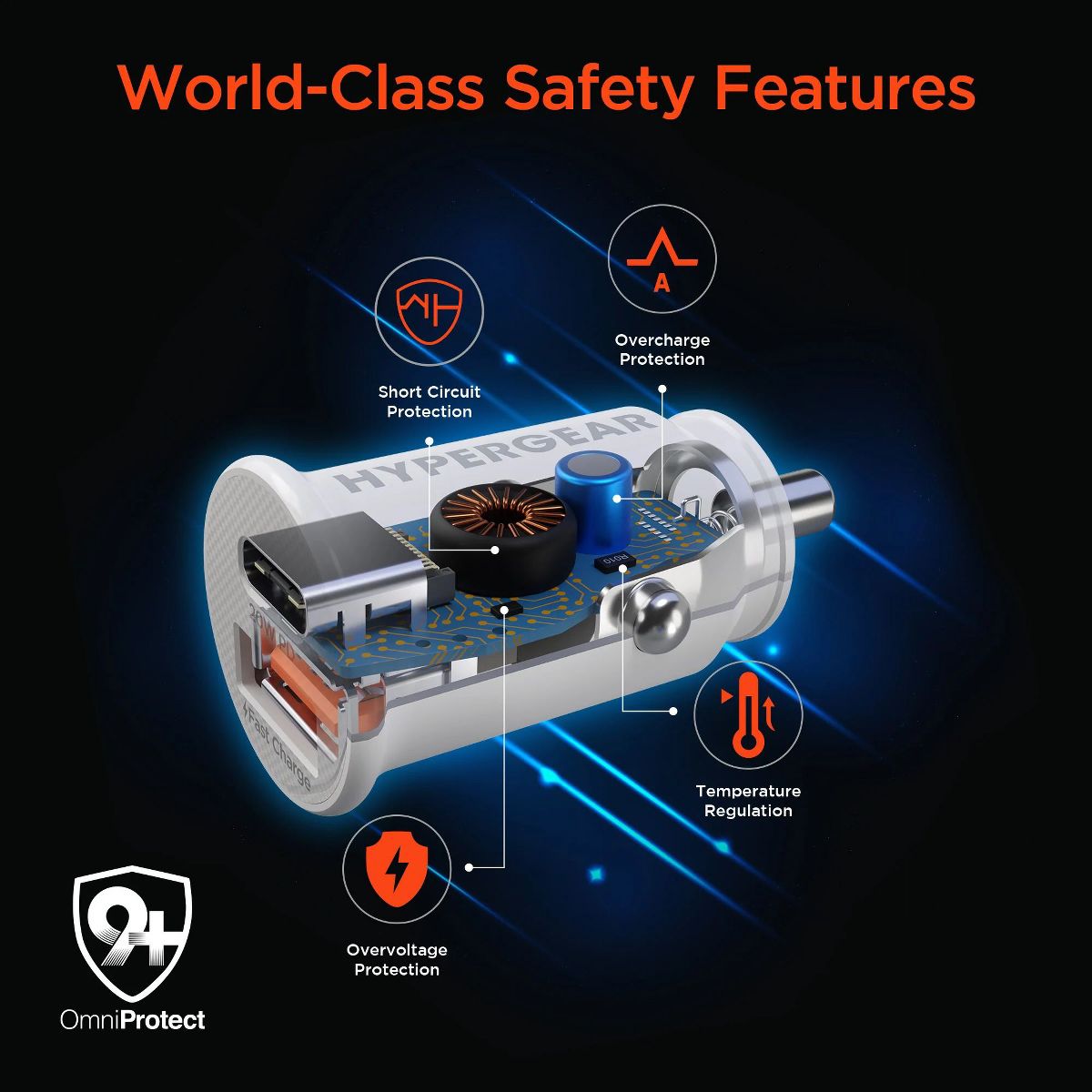 HyperGear mini 20W USB-C PD + 18W USB Fast Car Charger | White