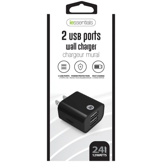 iEssentials® 2.4-Amp Dual USB Wall Charger (Black)