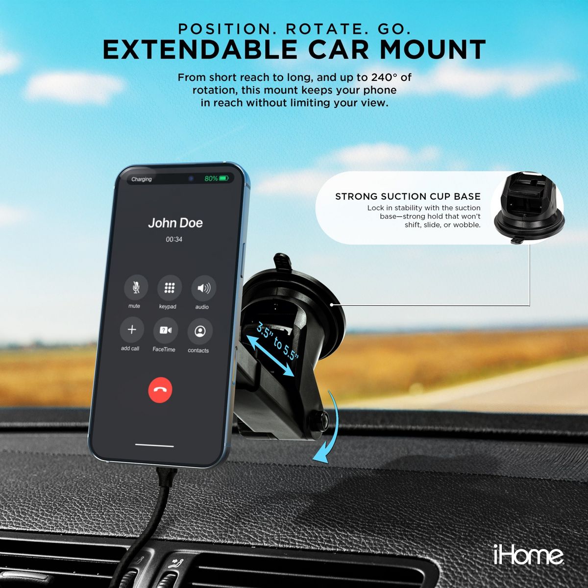 The multiple mounting options give you total freedom in how you position your phone. The vent mount features a strong clip and soft silicone grip that locks your device in place without slipping. Prefer a dashboard or windshield setup? The rotating suction mount extends from 3.5" to 5.5" and pivots up to 240°, letting you find the perfect viewing angle for navigation or hands-free calls.