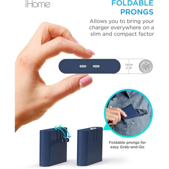 The iHome AC Pro stands out among chargers for multiple devices with its foldable prongs, making it easy to pack into your bag or suitcase. Whether you're commuting to work or on a holiday, these phone chargers ensure your devices are always charged, no matter where you are.