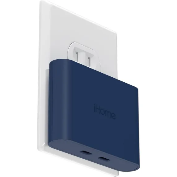 iHome Multiport 40W USB-C Charger, AC Pro 2-Port Flat Block, Dual Fast Charging Wall Adapter
