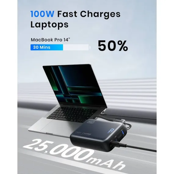 INIU Leopard Power 100W—your ultimate travel companion! This compact 25,000mAh power bank features INIU's TinyCell and HyperStack technology, breaking size limits on traditional chargers. Say goodbye to bulky bricks! With a powerful 100W output, it charges flagship laptops lightning-fast, keeping you productive on the go. Plus, it powers all your devices—from the latest iPhones to gaming consoles and smartwatches. What's more, you are also back up with industry-leading 3-year warranty!
