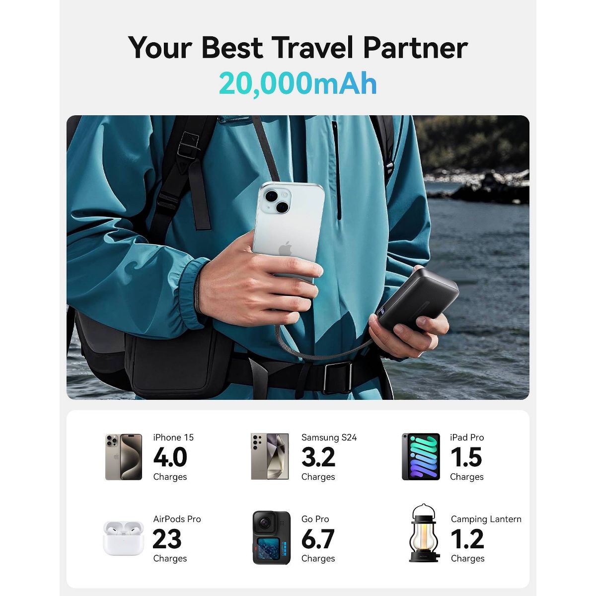 INIU Pocket Neo 20000mAh 22.5W, the ultra-compact 20,000mAh power bank, comes with a USB-C lanyard cable that lets you charge different devices effortlessly while traveling or commuting. It charges your iPhone 16 to 60% in just 25 minutes, 2X faster than typical 12W power banks. What's more, you are also back up with industry-leading 3-year warranty!