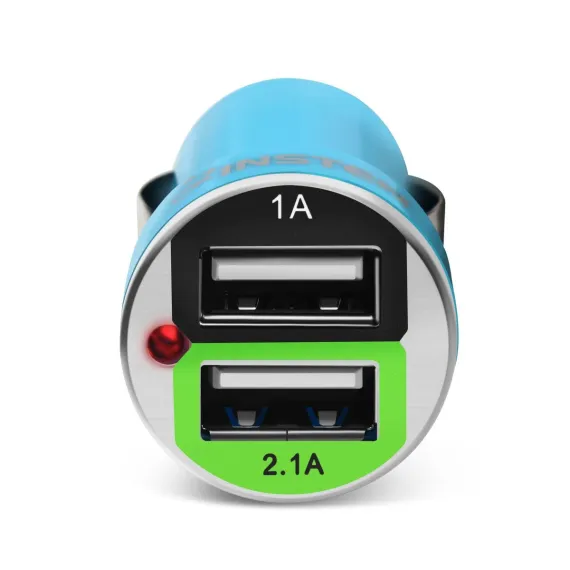 Insten 2-Port Dual USB 2.1A Car Charger Adapter for iPhone 11 Pro Max XS X 8 8+ iPad Mini Air Pro Samsung S9 S10 S10e Note 10 Smartphone Android, Blue