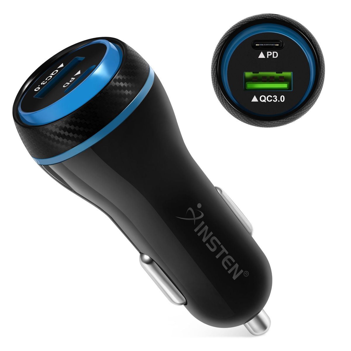Insten 36W 2-Port USB-C PD + USB QC 3.0 Fast Charging Car Charger Compatible With iPhone Android Cell Phone Universal