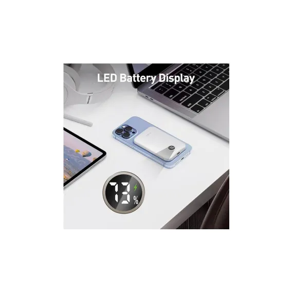 iWalk Magnetic Ultra Slim Portable 5000mAh Wireless Charger Power Bank W/LED Display Battery Pack Easy Grip Compatible for iPhone 12 and Up - White