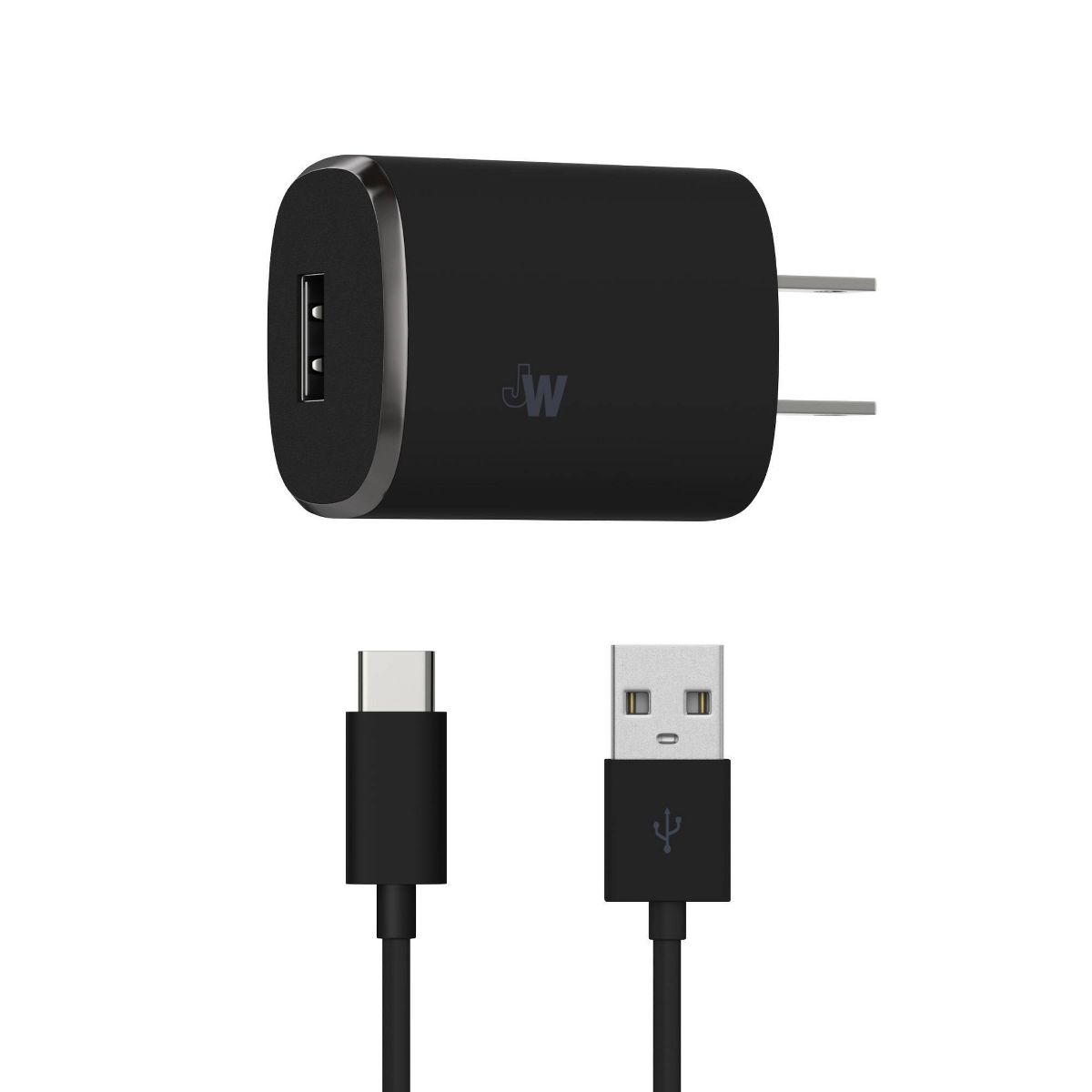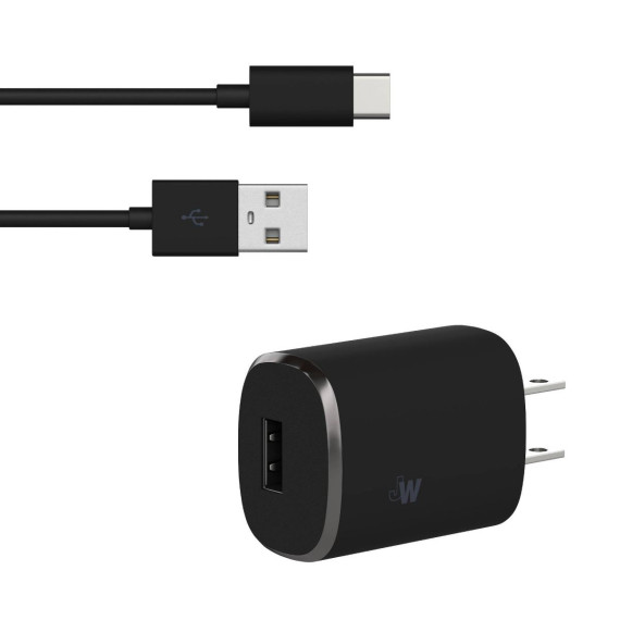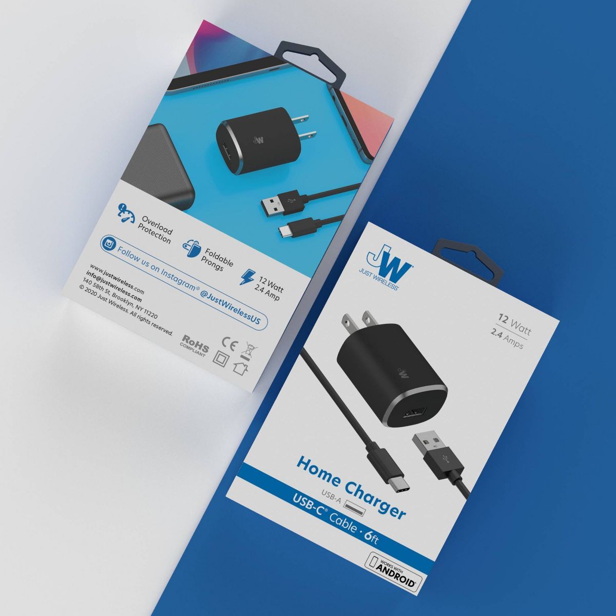 Just Wireless 2.4A/12W 1-Port USB-A Home Charger with 6' TPU Type-C to USB-A Cable - Black: Lightweight Design, USB Cable & Wall Adapter