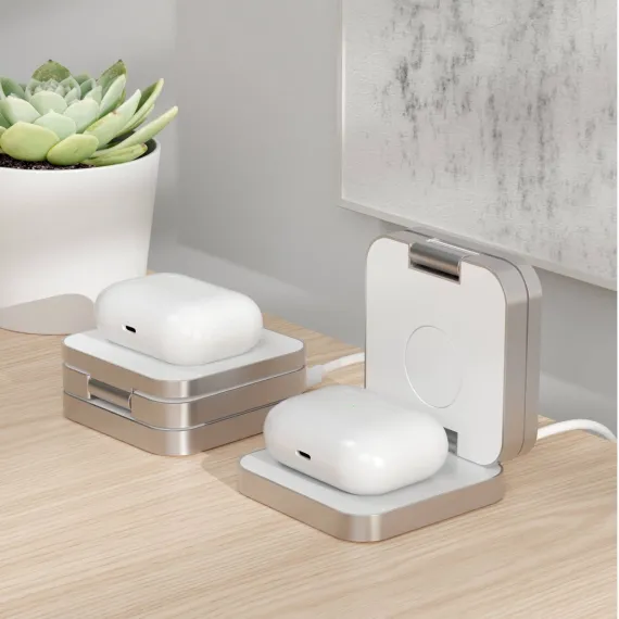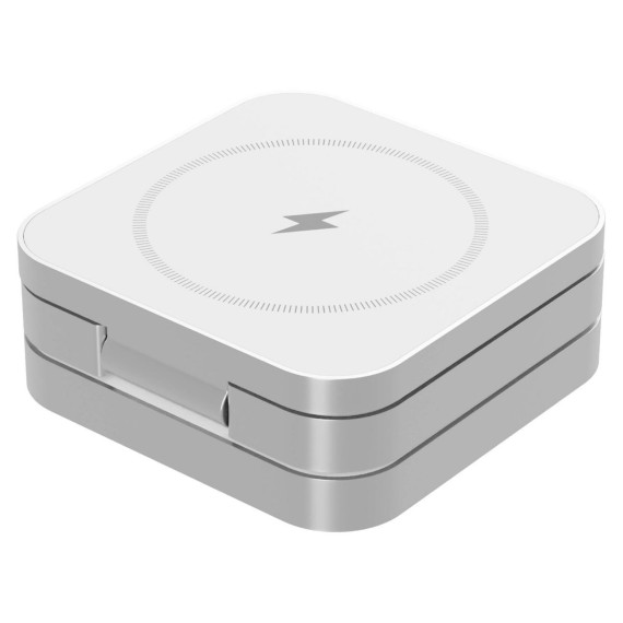Just Wireless 3-in-1 Magnetic Collapsible Wireless Charger - White: USB-C, 15W Output, MagSafe Compatible