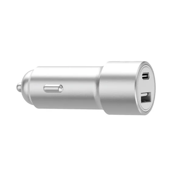Just Wireless Pro Series 42W 2-Port USB-A & USB-C Car Charger - Silver & White