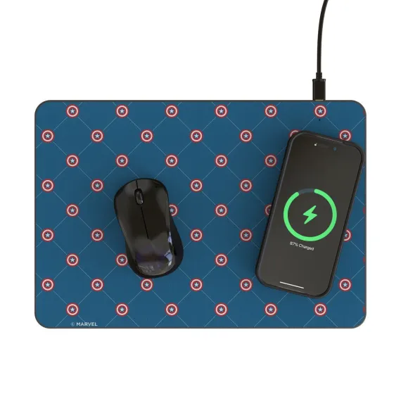 Marvel Avengers Captain America Pattern 15-Watt Wireless Charger and Mouse Pad
