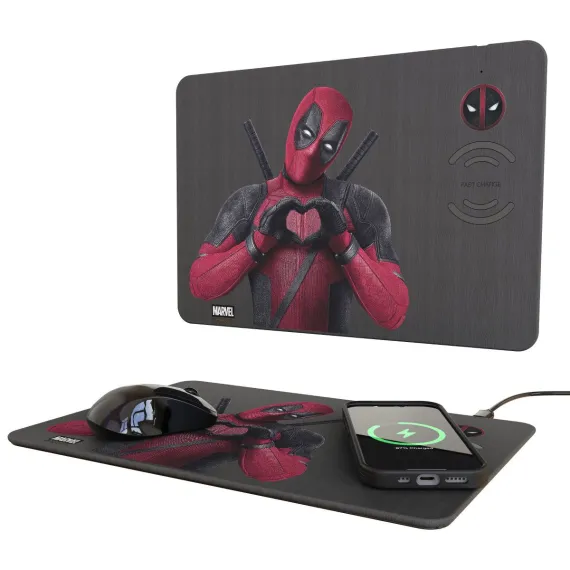 Marvel Deadpool Badge 15-Watt Wireless Charger and Mouse Pad