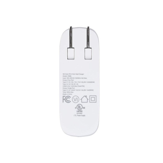 Rid yourself of outdated chargers along with their bulk size and slow charging speeds. Upgrade to an ultra compact, efficient, safe, and powerful 4-Port USB Type-C charger with Gallium Nitride (GaN) technology from Monoprice! Gallium Nitride is a superior material for semiconductors than traditional silicon, with higher voltage levels, need for fewer supporting components, and more efficient current transfer. This means there is less power loss to heat, a smaller form factor, and significantly faster charging than silicon-based chargers. Featuring 100W of Power Delivery (PD), this charger provides the fastest and most efficient charging for Apple iPhone and iPad, Samsung Galaxy S, other Android phones and tablets, laptops, and any other device with a USB-C power input.