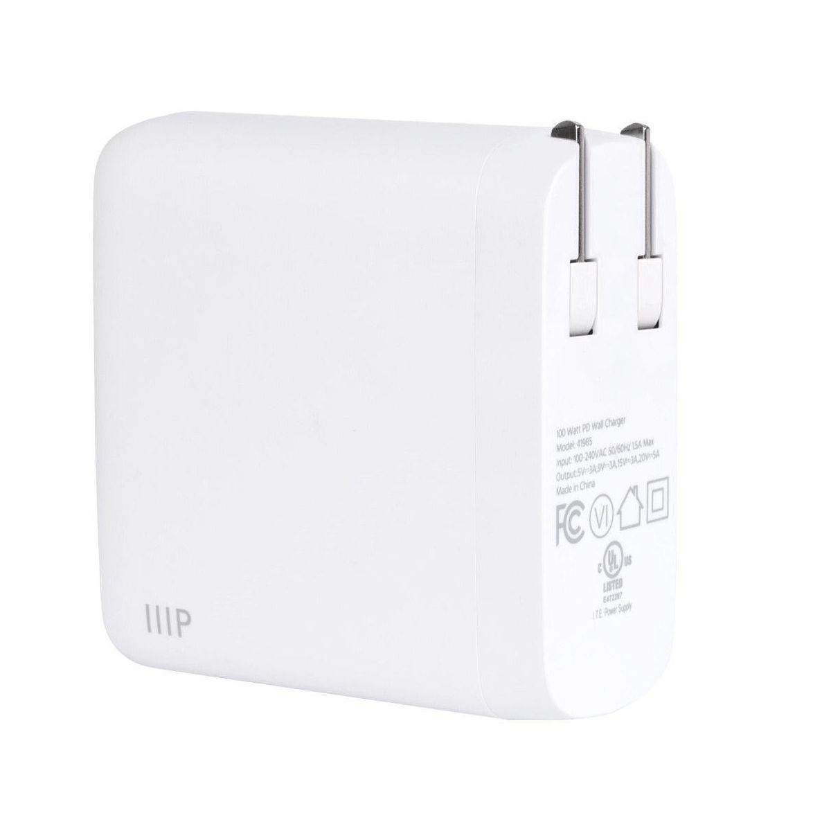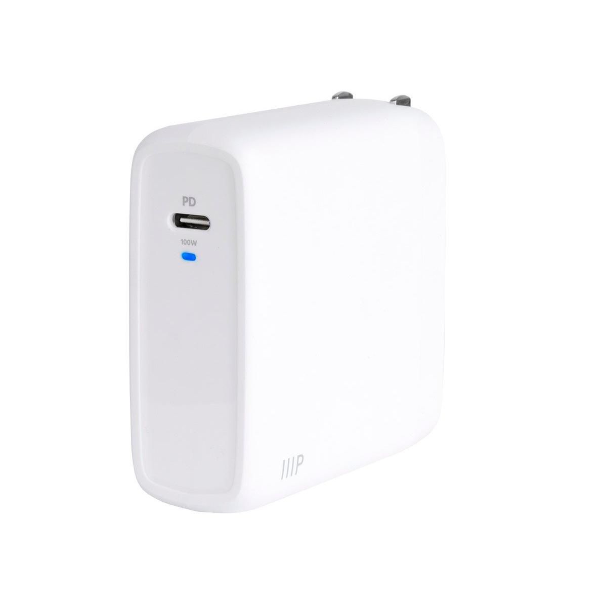 Monoprice 100W USB-C GaN Charger, Fast Charge, Foldable, PD Technology, for MacBook, iPad, iPhone, Galaxy, White