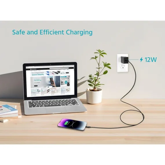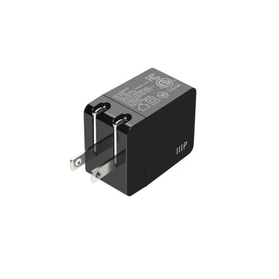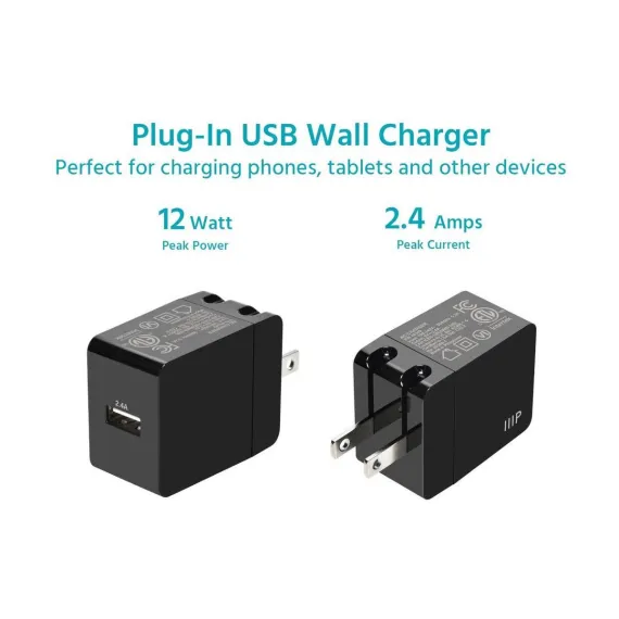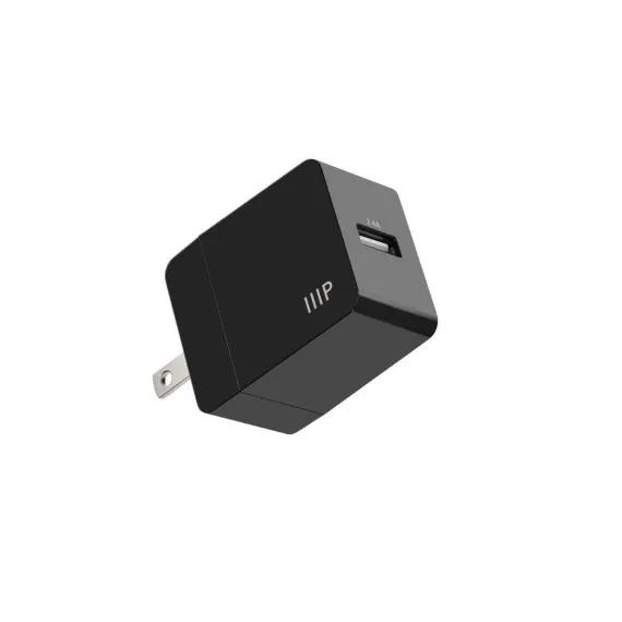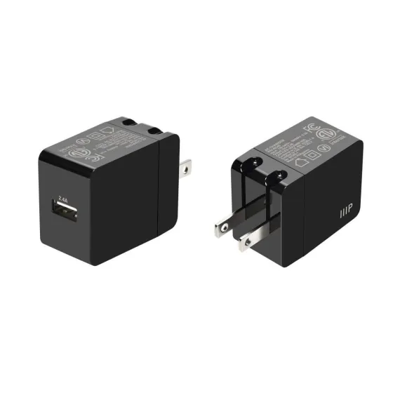 Monoprice 12W USB-A Wall Charger - Foldable, Compact, for Phones, Tablets and Electronic Device, Black