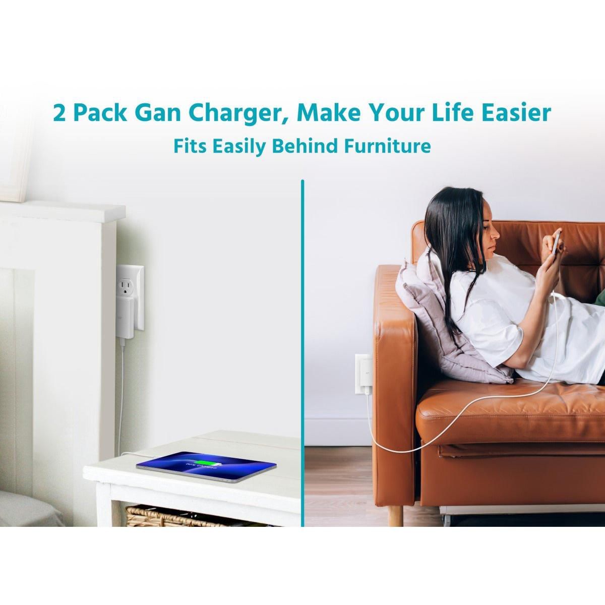 Monoprice 2-Pack 35W Ultra Slim USB-C GaN Charger - Fast Charge, Foldable, PD3.1 & PPS