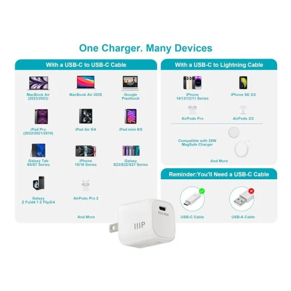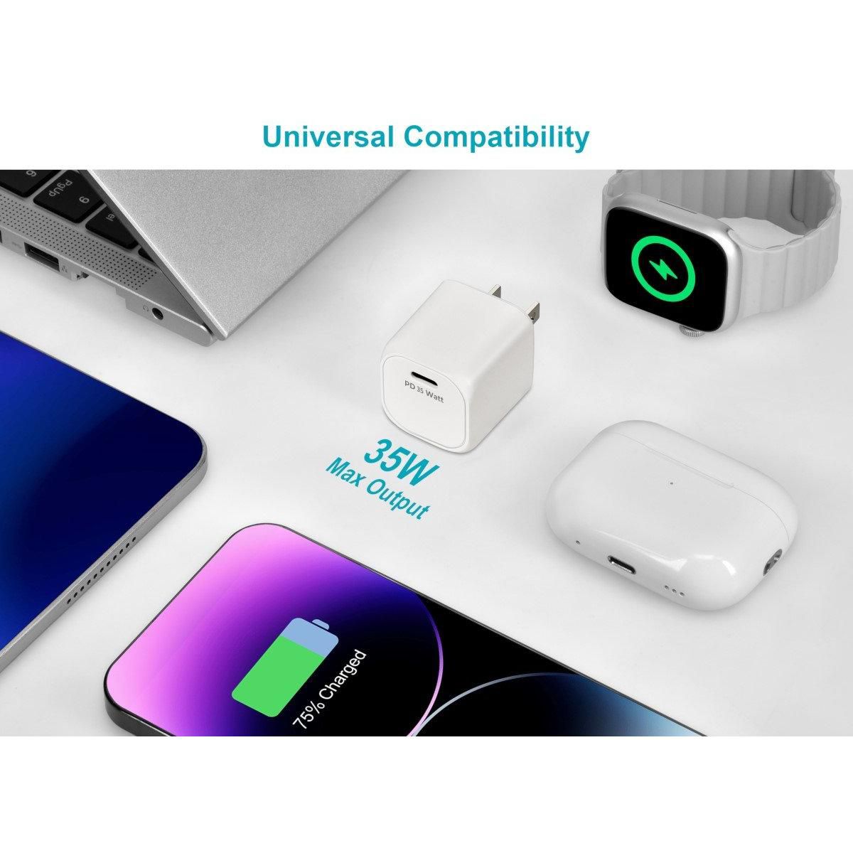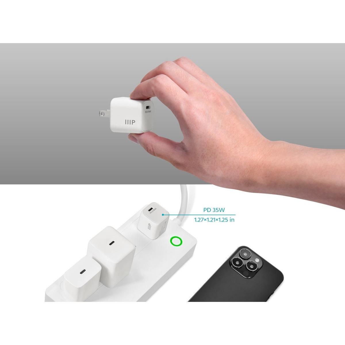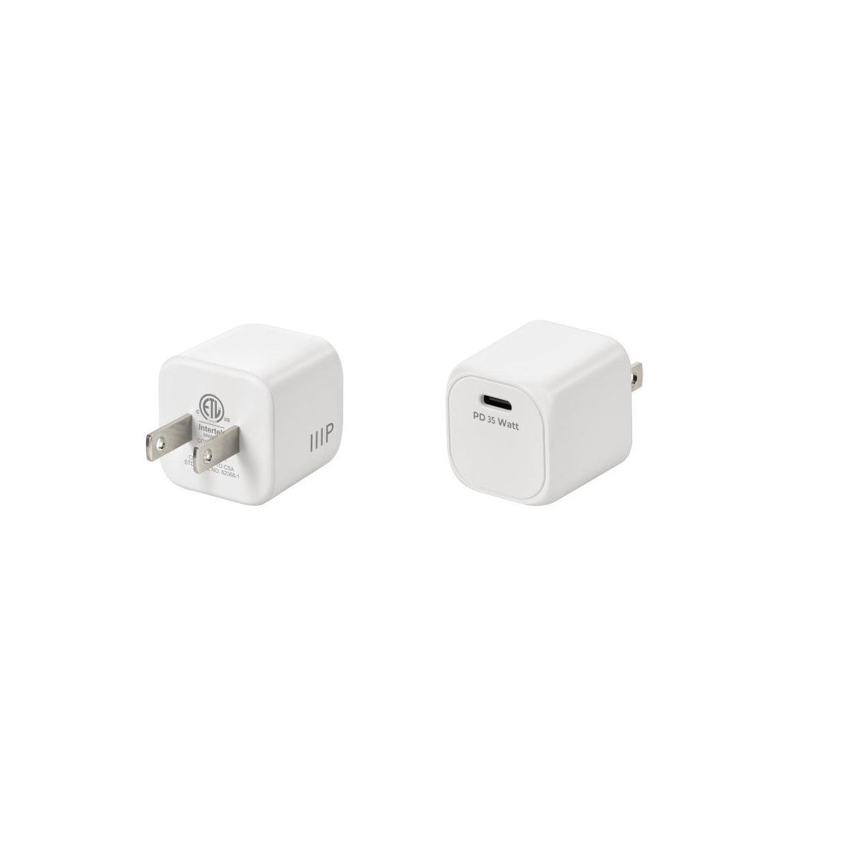 Monoprice 2-Pack USB-C Mini GaN Charger - 35W PD 3.0, Fast Charging, Compatible with iPhone, iPad, Samsung Galaxy, White
