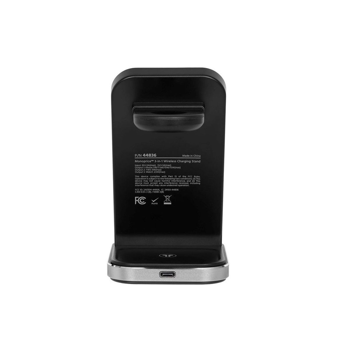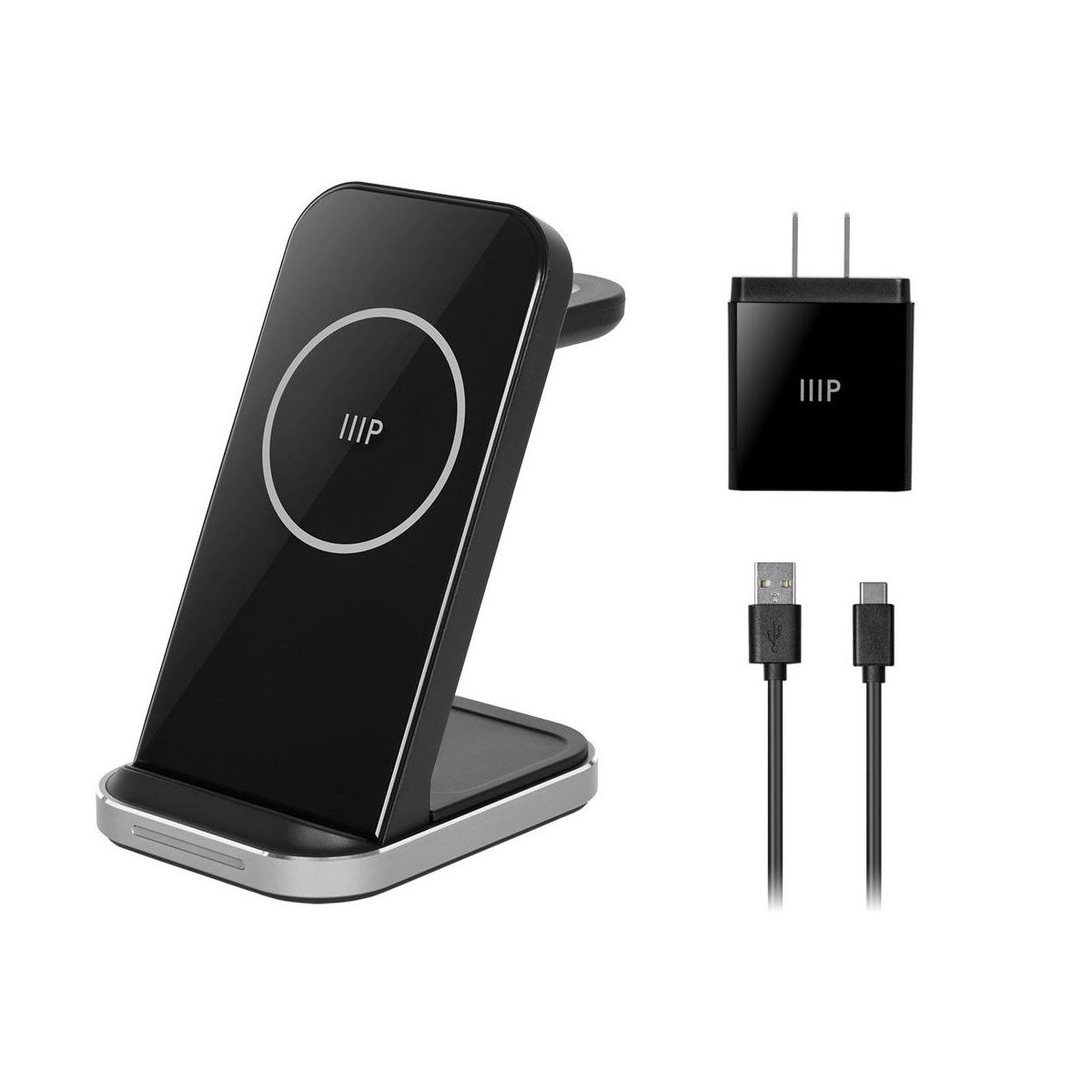 Monoprice 3-in-1 Wireless Charging Station - Bundled with 3.0 Wall Charger, Fast Charging, Detachable Watch Charger, for iPhone, Apple Watch, AirPods