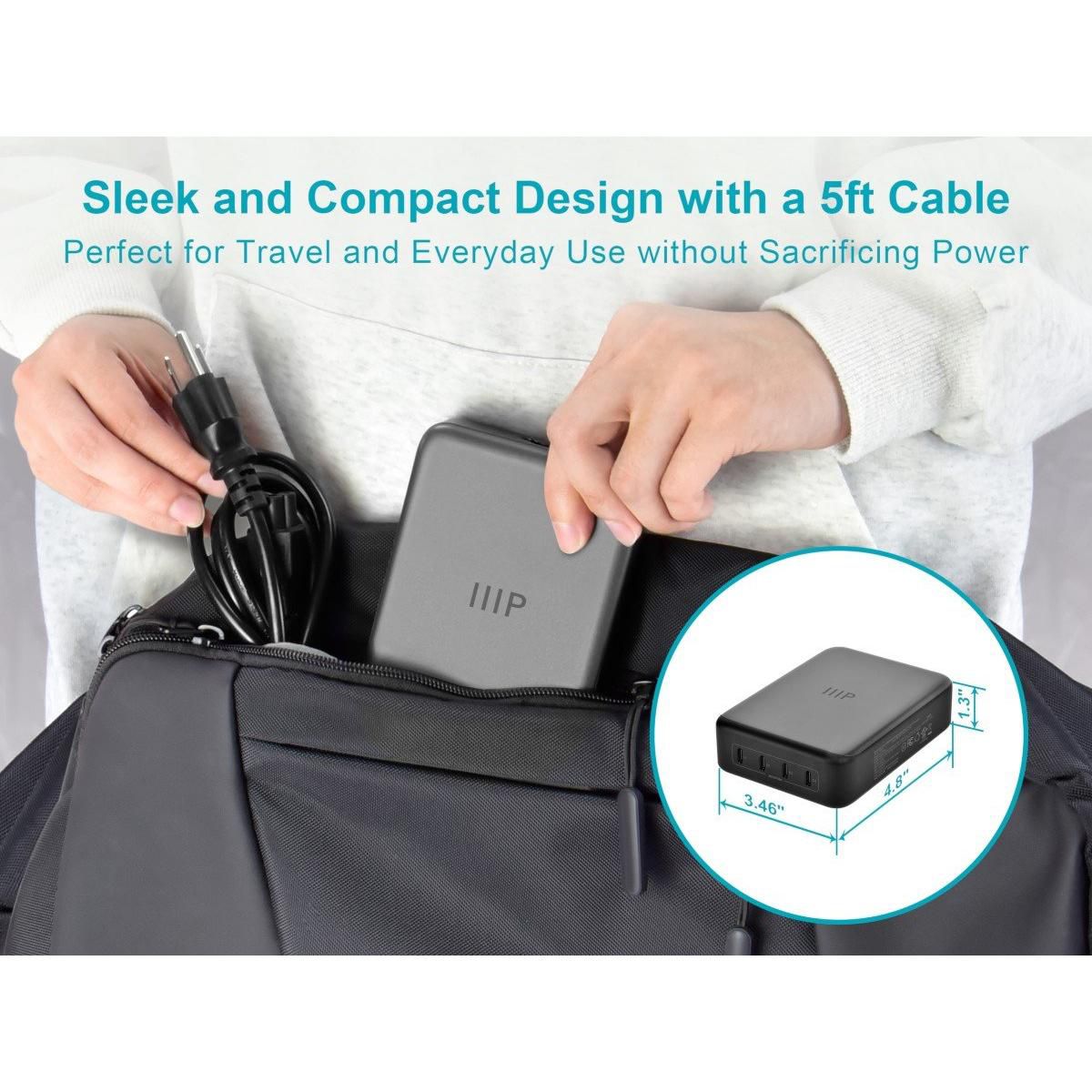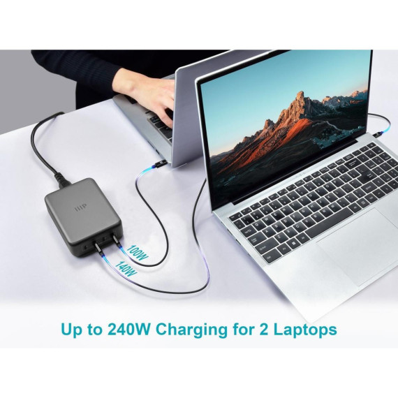 Monoprice 4-Port 240W USB-C GaN Charger, Fast Charge, For Laptops, Tablets, and Phones, Black