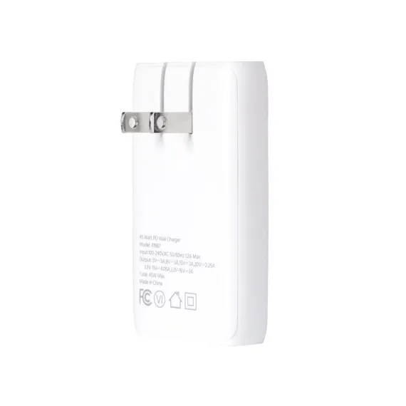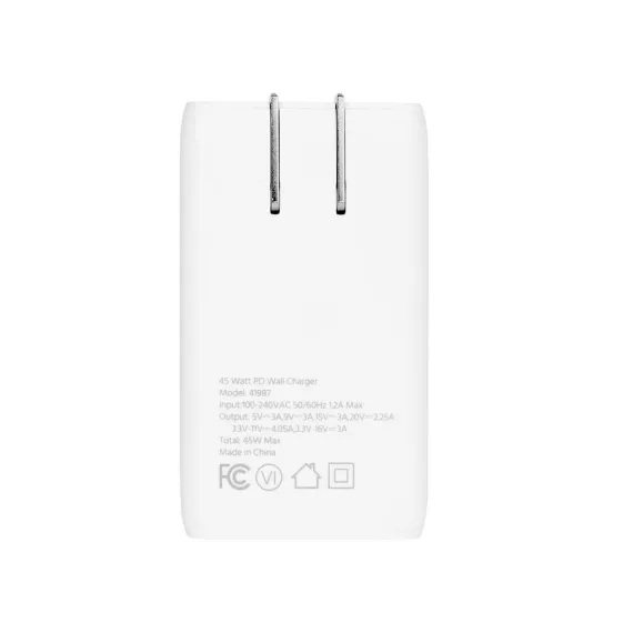 Rid yourself of outdated chargers along with their bulk size and slow charging speeds. Upgrade to an ultra compact, efficient, safe, and powerful USB Type-C charger with Gallium Nitride (GaN) technology from Monoprice! Gallium Nitride is a superior material for semiconductors than traditional silicon, with higher voltage levels, need for fewer supporting components, and more efficient current transfer. This means there is less power loss to heat, a smaller form factor, and significantly faster charging than silicon-based chargers. Featuring 45W of Power Delivery (PD), this charger provides the fastest and most efficient charging for Apple iPhone and iPad, Samsung Galaxy S, other Android phones and tablets, laptops, and any other device with a USB-C power input.