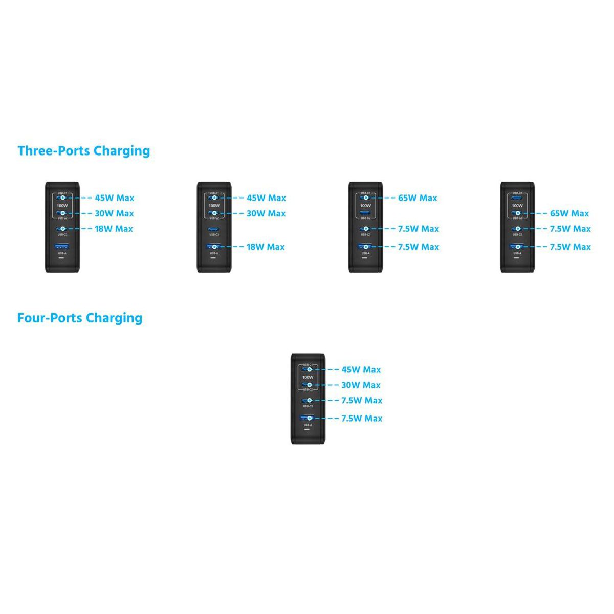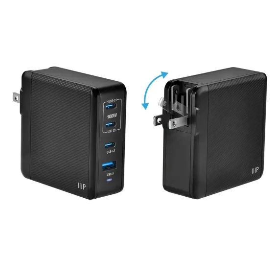 Monoprice Compact 100W 4-Port GaN Charger, Fast Charge, 3x USB-C & USB-A, Universal Compatibility